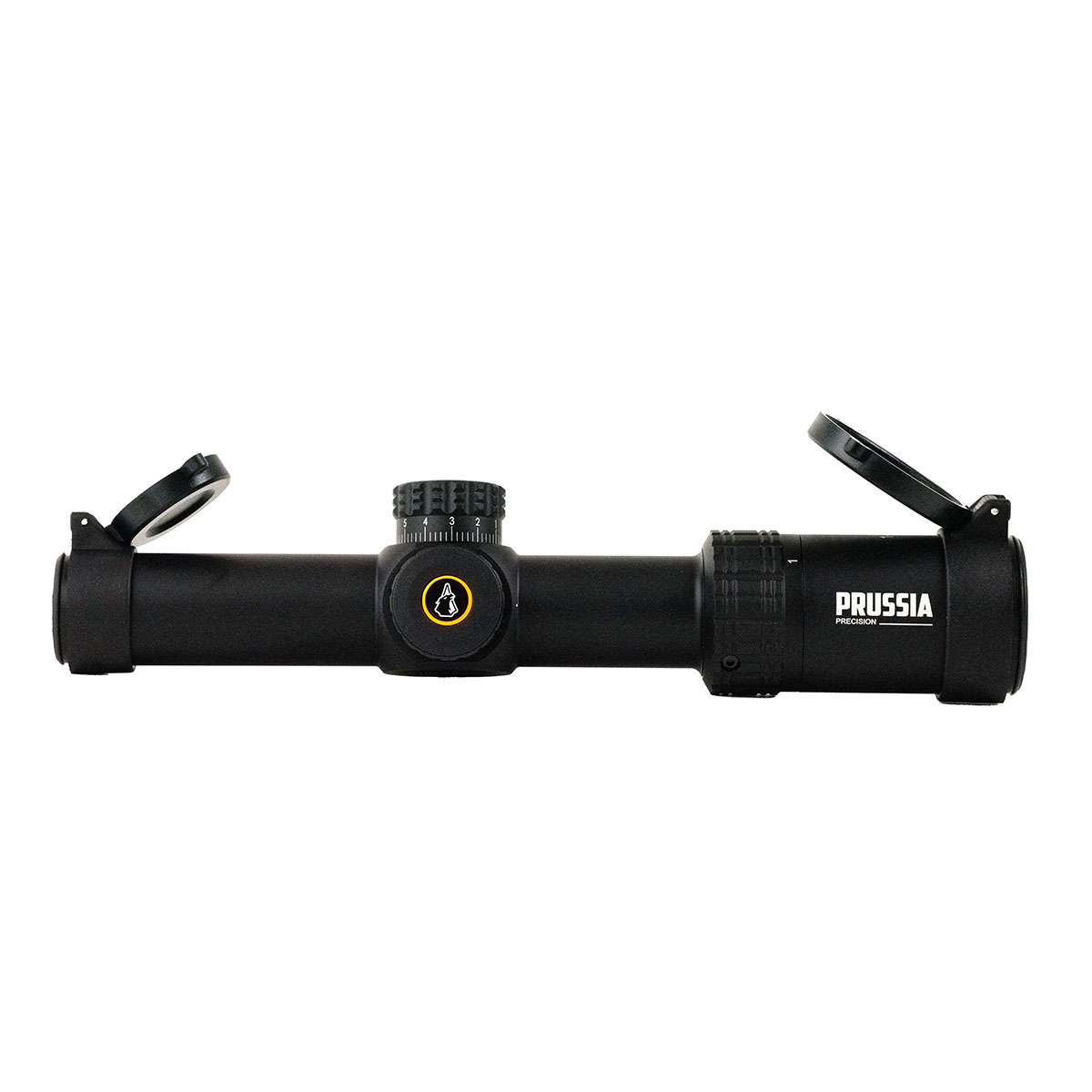 726529841091 The Prussia Precision S6 1-6×24 LPVO is a versatile low power variable optic built for dynamic shooting, competition, and practical rifle setups. With a true 1× to 6× magnification range, it allows rapid, both-eyes-open engagement at close distance while offering the precision needed for confident shots at medium range. The scope features a modern ballistic reticle positioned in the second focal plane (SFP), ensuring the reticle size remains constant throughout the entire magnification range. This provides a consistent sight picture and intuitive use whether operating at 1× speed or dialing up to 6× for precision work. Red or green illumination with five brightness levels allows optimal visibility in changing light conditions and is powered by a single CR2032 battery. Built on a robust 30 mm tube, the optic offers a wide adjustment range of over 50 MIL, with precise and repeatable 1/5 MIL click adjustments. Locking turrets help secure your settings under recoil and during movement, ensuring reliability in demanding environments. Constructed from durable 6061-T6 aircraft-grade aluminum, the S6 is engineered for real-world performance. It is shock resistant up to 750 G, nitrogen filled to eliminate internal fogging, and rated to IPX4 waterproof standards, making it suitable for use in adverse weather conditions. With a 24 mm objective lens, generous eye relief, the scope maintains a compact profile while delivering clear, bright optics and stable performance on modern sporting and tactical rifles.