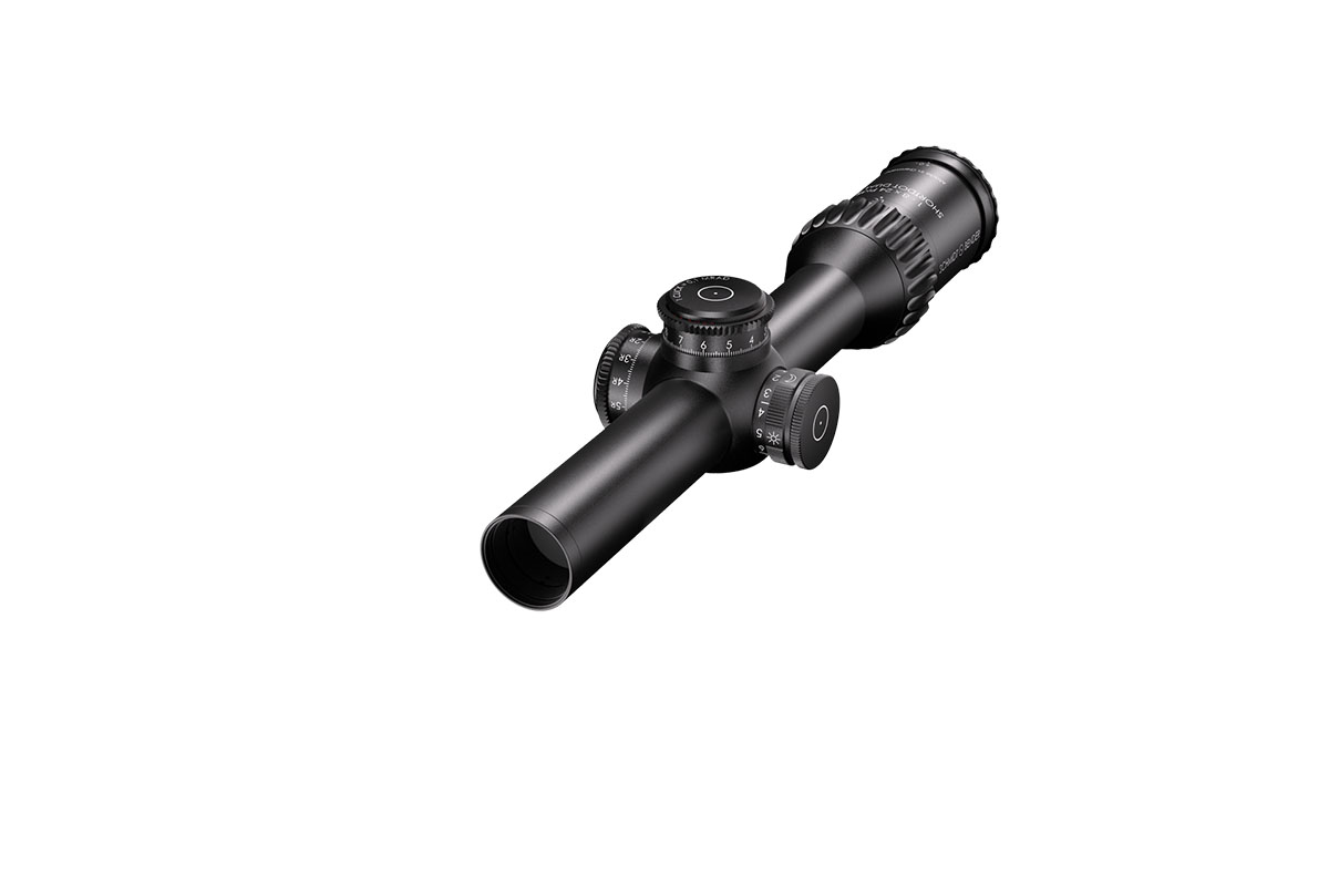 4060537046915 The 1‑8×24 PM II ShortDot Dual CC is a premium multipurpose riflescope designed to bridge ultra‑fast close‑quarters engagement and precision mid‑range shooting. With a full 1–8× magnification range, it integrates both a high‑visibility red‑dot sight for rapid acquisition and a tactical reticle for comprehensive zoom usage. Key Features and Highlights Dual focal plane system: Combines a daylight‑visible red dot in the second focal plane (SFP) with a tactical reticle in the first focal plane (FFP) for consistent hold‑points across the zoom range. Patented Close‑Combat Mode (CC‑Mode): When set at 1× magnification the parallax is fixed at approx. 7 m for true parallax‑free shooting at close range; above ~1.1× it transitions to ~100 m enabling accurate mid‑range engagement. Large exit pupil and generous eye relief: Optimized for fast, intuitive use in dynamic or static shooting scenarios—providing comfortable alignment whether standing, kneeling or prone. Compact and rugged design: With a 30 mm main tube diameter, length of approx. 293 mm and weight of approx. 635–650 g depending on configuration, this scope is built to handle extreme conditions—including low temperatures and high recoil/shock. High optical quality: Field of view spans roughly 35.3–4.9 m at 100 m across the zoom range, offering wide situational awareness at low magnification and refined detail at higher zoom. Precision mechanics: Turrets are ultra‑low profile, lockable, extremely durable and designed for exacting use in tactical or competition environments. Typical Specifications Magnification: 1–8× Focal Plane: Dual (1st and 2nd) Parallax: CC‑Mode ~7 m; Standard Mode ~100 m (optional up to ~300 m) Field of View: ~35.3–4.9 m @100 m Exit Pupil: ~9.8–3.0 mm Eye Relief: ~90 mm Tube Diameter: 30 mm Length: ~293 mm Weight: ~635–650 g