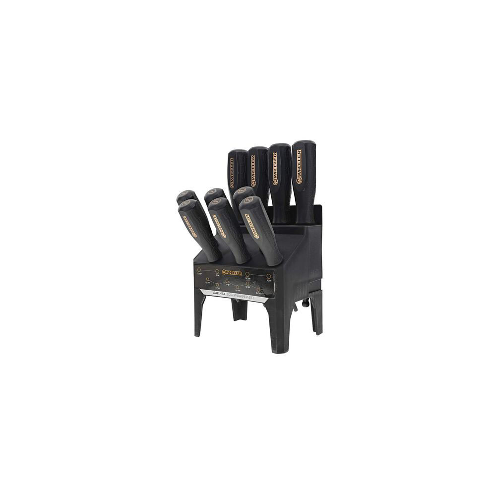 Mit dem Wheeler 10-teiligen SAE Hex Benchtop Schraubendreher Set bist du bestens ausgestattet für alle gängigen SAE Hex Befestigungen. Dieses Set umfasst Schraubendreher von 3/32" bis 3/8", sodass du für jede Aufgabe das richtige Werkzeug zur Hand hast.