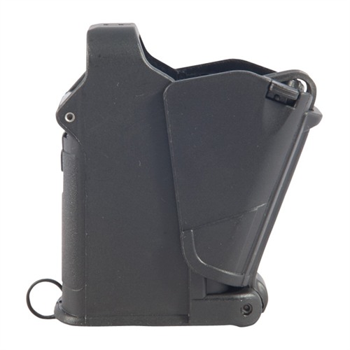 Construit en polymère noir renforcé, il se verrouille lorsque tu ne l'utilises pas, ce qui prend peu de place dans ta poche ou ton sac de tir. L'UpLula convient aux magasins simples et doubles de 9mm, .357 SIG, .40 S&W, 10mm, et .45 ACP, ainsi que certains magasins de .380. Il ne chargera pas les magasins Glock de 6 cartouches en simple pile de .45, les magasins Smith & Wesson de 7 cartouches en simple pile de 9mm, ni les magasins avec moins de 8mm entre les lèvres d'alimentation.