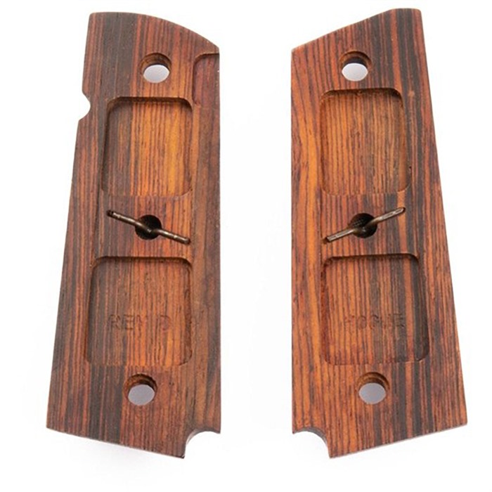 - Posiziona le nuove guancette in Cocobolo sul telaio dell'arma, allineandole con i fori per le viti.
