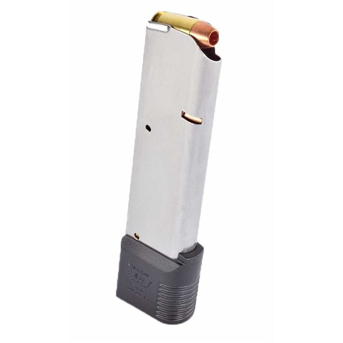 Das 47 Series Full-Size 10-Round Magazin hat ein dramatisches Redesign durchlaufen, das darauf abzielt, die Aftermarket-Angebote für 1911-Enthusiasten zu verbessern. Die grösste Änderung ist die Hinzufügung eines verlängerten Basis-Pads aus Polymer, wodurch die Notwendigkeit eines Überinsertionstabs, der in den Originalmagazinen des Unternehmens zu finden war, entfällt.