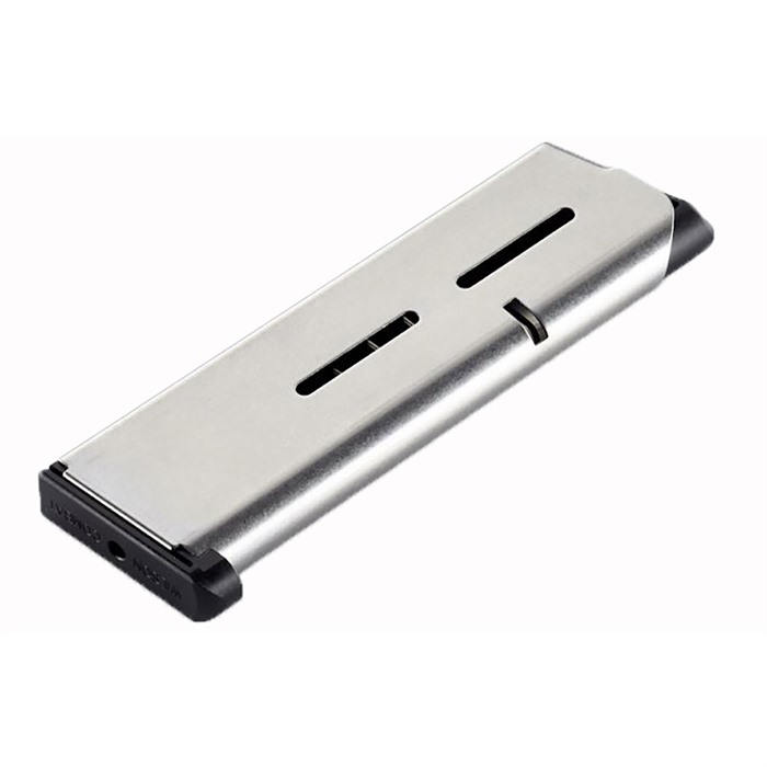 Wilson Combat® has been supplying serious shooters and professionals with the worlds' most reliable and durable .45 auto magazines for the past 30 years. They are used by the worlds' most Elite U.S. Army SPEC OPS unit, FBI SWAT, Thunder Ranch and professionals worldwide. NO other .45 magazine on the market can compare for proven inherent reliability, durability and the ability to remain fully loaded for long periods of time without damage. Wilson Combat magazine springs are specially fabricated from the highest tensile strength heavy duty spring wire for long service life enhanced feeding and positive slide stop operations. Their magazine bodies are manufactured from .027" (the thickest in the industry) aircraft grade certified 17-7 PH stainless steel and heat treated for maximum durability and service life. Their dimensional tolerances are held so close that you will never encounter a Wilson magazine that doesn't drop free from your pistol or that your rounds are tight inside the tube as long as your pistol and ammo are close to proper specifications. • Increases Reliability in ALL 1911 Pistols • Available in Stainless Steel or Black finish • .027" Tube Walls - Thickest In The Industry • Tubes are Heat Treated for Maximum Durability and Service Life • Fiber-Fill Nylon Self-Lubricating Follower Provides Smooth Round Feeding • Maximum Tensile Strength Heavy-Duty Spring for Long Service Life, Enhanced Feeding and Positive Slide Stop Operation • Removable .350"" Plastic Base Pad for Easy Maintenance and Versatility with Different Base Pad Options • No Other Magazine on the Market Can Compare for Proven Inherent Reliability, Durability and the Ability to Remain Loaded for Long Periods of Time Without Damage. • No-Risk Service Policy - If It Breaks from Normal Use, WC Replaces It!