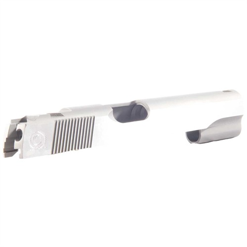 Custom-quality slides from Caspian, ready to be fitted to the frame of your choice. They start as high-quality forgings for extra strength, then are heat-treated to Rc 38-41 before machining for exceptional dimensional stability. Sides are polished, while the rest of the surface is bead-blasted for a non-glare, matte finish. Deep-cut, forward-angled rear cocking serrations prevent slippage when racking, even with a wet hand. Available in 4340 carbon steel (CS) and 416 stainless steel (SS) with .45 ACP, .40 S&W, and 9mm breechfaces. Commander and Officers models in .45 ACP only. Choose a slide without sight cuts (NC), or between two pre-cut dovetail options: a Novak Lo-Mount or Bo-Mar BMCS rear cut, both coupled with a Novak front cut. Recon slide is a Government slide with ball cuts at the front that line up with the light rail on the Caspian Recon frame (available separately). All slides require the use of a 9mm/.38 Super firing pin.