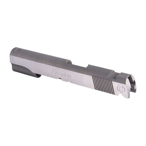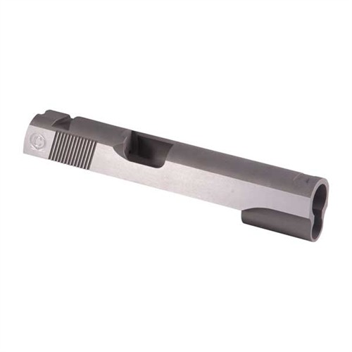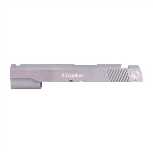 SPECS: 4340 carbon steel, in-the-white, or 416 stainless steel, natural finish. Government model accepts 5" barrel. Commander accepts 4.25" barrel. Officers model accepts 3.5" barrel. All Caspian slides require the use of a 9mm/.38 Super firing pin.