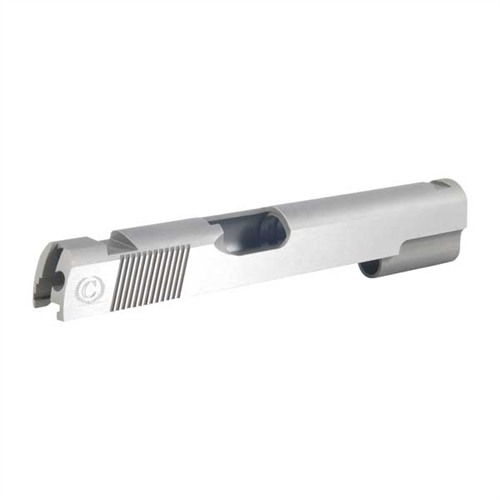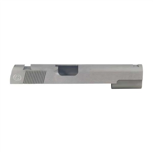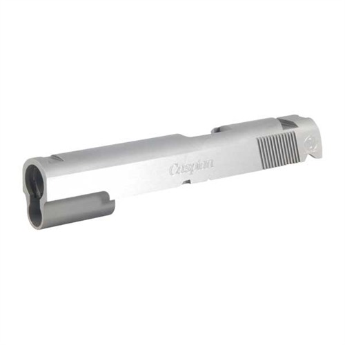 SPECS: 4340 carbon steel, in-the-white, or 416 stainless steel, natural finish. Government model accepts 5" barrel. Commander accepts 4.25" barrel. Officers model accepts 3.5" barrel. All Caspian slides require the use of a 9mm/.38 Super firing pin.