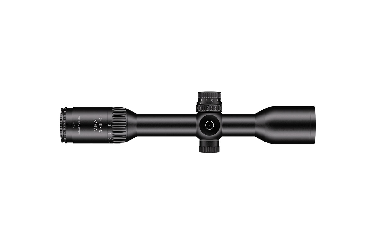 4060537066432 The 3-18x42 Meta combines exceptional optical clarity with powerful performance, delivering a premium shooting experience for both hunters and precision marksmen. Its wide field of view, paired with the LP7 reticle featuring an illuminated red dot, provides superior situational awareness and lightning-fast target acquisition. Unmatched precision is achieved through patented Zero Deviation Technology, a parallax adjustment starting from 20 m, and a generous internal adjustment range, ensuring consistent accuracy even at long distances. For enhanced mounting flexibility, the 3-18x42 Meta features the innovative “LPI” system – an illumination control integrated into the parallax adjustment turret. This smart design improves ergonomics and handling, offering smooth operation for both right- and left-handed shooters. The slim, streamlined construction of the scope makes it perfectly compatible with clip-on devices, while the reinforced ocular ring allows secure attachment of dust covers or add-on optics. With its blend of cutting-edge technology, robust build quality, and refined usability, the 3-18x42 Meta stands as a true symbol of precision engineering — designed to deliver reliability, adaptability, and clarity in every shooting scenario.