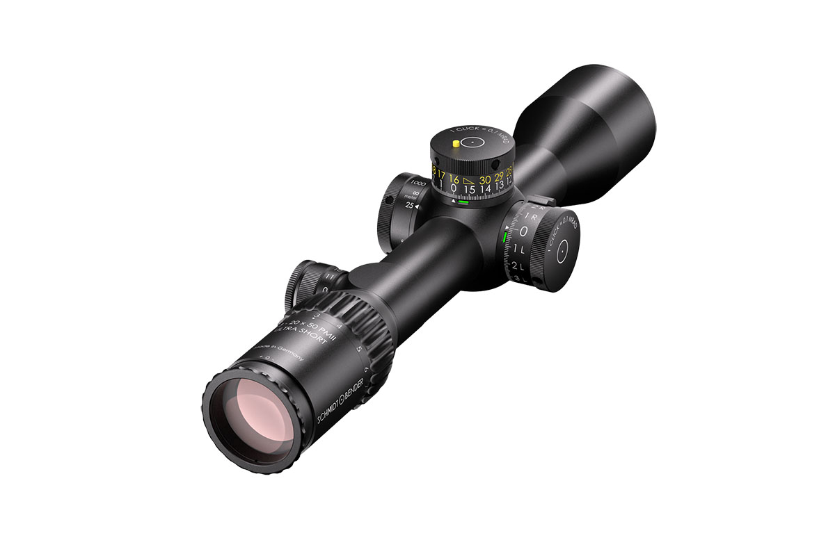 4060537039887 The 3‑20×50 PM II Ultra Short from Schmidt and Bender is a compact yet powerful riflescope engineered for high-performance engagements across medium to long distances. With its 3–20× magnification range and a 50 mm objective lens, it offers outstanding optical clarity and flexibility in a streamlined form factor. Constructed around a robust 34 mm main tube, it maintains a length of approximately 340 mm and weighs around 900 g, striking an excellent balance between size and performance—ideal for mounting on compact platforms without compromising optics. Its field of view spans roughly 13.0–2.1 m at 100 m, providing broad situational awareness at lower magnification and refined detail at the high end. The exit pupil ranges around 11.4–2.5 mm, and the eye relief is approximately 90 mm, supporting comfortable shooting in varied positions while maintaining strong light-gathering even as light fades. Advanced features include first focal plane (FFP) illuminated reticle options, side parallax adjustment (from approx. 25 m to infinity), and a low-profile elevation turret optimized for tactical precision. Key Specifications: Magnification: 3–20× Objective Lens Diameter: 50 mm Main Tube Diameter: 34 mm Field of View: approx. 13.0–2.1 m @100 m Exit Pupil: approx. 11.4–2.5 mm Eye Relief: approx. 90 mm Length: approx. 340 mm Weight: approx. 900 g With precision optics, compact build, and rugged mechanical design, the 3‑20×50 PM II Ultra Short is built for serious shooters who demand premium performance in a versatile package.