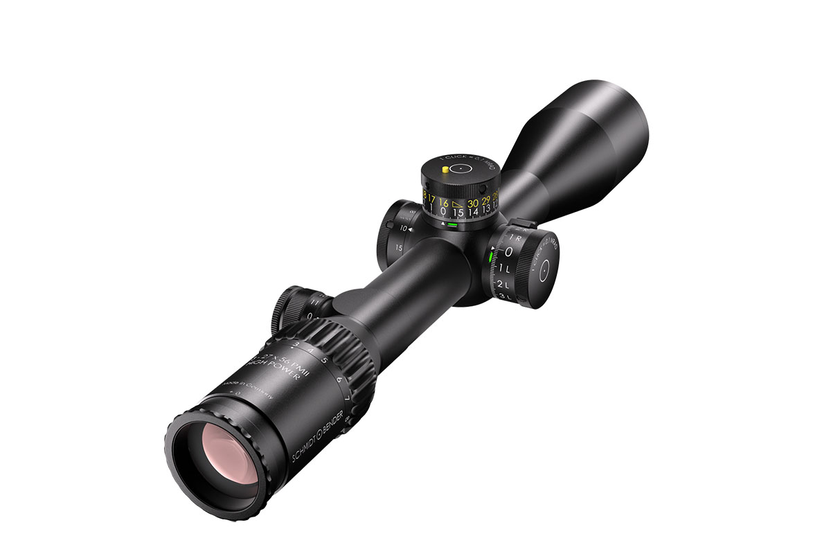 4060537043259 The 3‑27×56 PM II High Power from Schmidt and Bender is a premier tactical riflescope engineered for ultimate versatility—capable of precise performance from near‑range engagements all the way to extreme long‑distance targets. With an expansive 3–27× magnification range, this scope adapts effortlessly across calibres and mission profiles. Its 56 mm objective lens offers exceptional light gathering and clarity, enabling detailed target acquisition even at great distances. The field of view spans approximately 13.0–1.4 m at 100 m, while the exit pupil ranges around 8.7–2.1 mm. Generous eye relief of around 90 mm ensures comfortable alignment and a stable sight picture. Built on a rugged 34 mm main tube, the scope is constructed for demanding environments. The turret system accommodates ultra‑fine click values (e.g., ~0.1 mrad) and massive internal adjustment ranges for elevation and windage—making it suitable for long‑range engagement scenarios. Parallax adjustment commonly spans from around 10 m to infinity, giving flexibility across varied target distances. Key Specifications: Magnification: 3–27× Objective Lens Diameter: 56 mm Main Tube Diameter: 34 mm Field of View: approx. 13.0–1.4 m @100 m Exit Pupil: approx. 8.7–2.1 mm Eye Relief: approx. 90 mm Click Value: approx. 0.1 mrad (~0.5 cm @100 m) depending on configuration Parallax: from ~10 m to infinity Crafted with German precision, the 3‑27×56 PM II High Power is ideal for professionals, competition marksmen or hunters who demand the highest optical clarity, mechanical resilience and full versatility across a wide range of engagement distances.