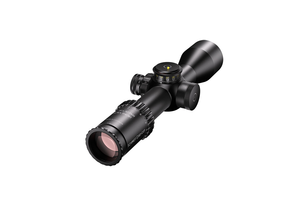 4060537063745 The 3‑20×50 PM II Ultra Short from Schmidt and Bender is a compact yet powerful riflescope engineered for high-performance engagements across medium to long distances. With its 3–20× magnification range and a 50 mm objective lens, it offers outstanding optical clarity and flexibility in a streamlined form factor. Constructed around a robust 34 mm main tube, it maintains a length of approximately 340 mm and weighs around 900 g, striking an excellent balance between size and performance—ideal for mounting on compact platforms without compromising optics. Its field of view spans roughly 13.0–2.1 m at 100 m, providing broad situational awareness at lower magnification and refined detail at the high end. The exit pupil ranges around 11.4–2.5 mm, and the eye relief is approximately 90 mm, supporting comfortable shooting in varied positions while maintaining strong light-gathering even as light fades. Advanced features include first focal plane (FFP) illuminated reticle options, side parallax adjustment (from approx. 25 m to infinity), and a low-profile elevation turret optimized for tactical precision. Key Specifications: Magnification: 3–20× Objective Lens Diameter: 50 mm Main Tube Diameter: 34 mm Field of View: approx. 13.0–2.1 m @100 m Exit Pupil: approx. 11.4–2.5 mm Eye Relief: approx. 90 mm Length: approx. 340 mm Weight: approx. 900 g With precision optics, compact build, and rugged mechanical design, the 3‑20×50 PM II Ultra Short is built for serious shooters who demand premium performance in a versatile package.