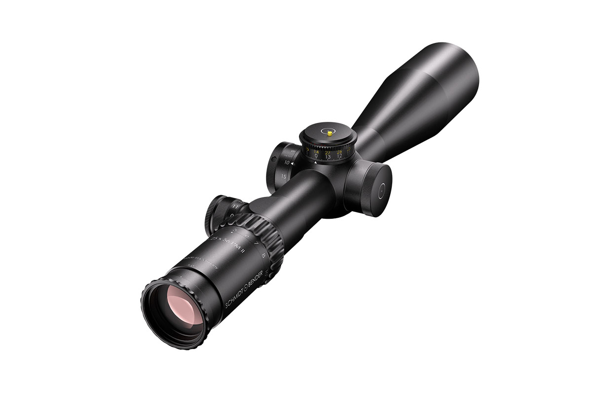 4060537065411 The 5‑25×56 PM II from Schmidt and Bender stands at the pinnacle of variable‑magnification tactical optics, engineered for long‑range precision, outstanding clarity and professional‑level reliability. With a wide 5–25× zoom range and a substantial 56 mm objective lens, it delivers exceptional light‑gathering capability, enabling crisp, bright imagery even at extended distances. Built upon a rugged 34 mm main tube, the scope accommodates large internal adjustment ranges and is designed for demanding use. It features a reticle in the first focal plane (FFP) so that scale and hold‑offs remain accurate at any magnification. The field of view spans approximately 5.3–1.5 m at 100 m, while the exit pupil ranges around 11.0–2.3 mm, and the eye relief remains generous at around 90 mm. The parallax adjustment typically extends from 10 m to infinity, enabling accurate focus from very close ranges through to extreme distances. The turret system is engineered for precision: click values as fine as 0.1 mrad (≈1 cm at 100 m) are available, and a double‑turn elevation turret combined with single‑turn windage allows vast usable correction ranges for wind and elevation. Optical transmission exceeds 90 %, and the construction is nitrogen‑filled, fog‑ and waterproof, ensuring full reliability in all climatic conditions. Key Specifications: Magnification: 5–25× Objective Lens Diameter: 56 mm Main Tube Diameter: 34 mm Field of View: approx. 5.3–1.5 m @100 m Exit Pupil: approx. 11.0–2.3 mm Eye Relief: approx. 90 mm Parallax Adjustment: from ~10 m to infinity Click Value: approx. 0.1 mrad (≈1 cm at 100 m) Optical Transmission: > 90 % Crafted in Germany to the highest standards, the 5‑25×56 PM II is the go‑to choice for military, law‑enforcement and competition shooters who demand absolute clarity, mechanical integrity and extreme flexibility in one optic.