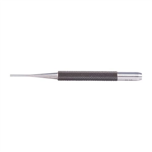 PIN PUNCH SET The Starrett Pin Punch Set is a meticulously crafted collection of precision tools designed for gunsmiths, machinists, and metalworkers who require accurate and reliable pin removal. Each punch is engineered to exacting standards, ensuring durability and performance in various applications. Description and Features: High-Quality Construction: Each punch is precision ground from specially selected tool steel, then hardened and highly polished to ensure longevity and resistance to wear. Ergonomic Design: The punches feature a blued, knurled grip area, providing a secure and comfortable hold during use. Size Identification: Each punch is individually marked with its size for quick and easy identification. Standard Length: All punches in this set are 4 inches long, offering a balanced reach for various tasks. Included Sizes: The complete set comprises eight pin punches with the following diameters: 1/16 inch 3/32 inch 1/8 inch 5/32 inch 3/16 inch 7/32 inch 1/4 inch 5/16 inch These sizes accommodate a wide range of pin removal tasks commonly encountered in gunsmithing and metalworking. Product Variations: The Starrett Pin Punches are available both as a complete 8-piece set and as individual punches, allowing Customers to select specific sizes as needed. Specifications: Material: Hardened tool steel Finish: Highly polished with blued grip area Length: 4 inches Grip: Knurled for enhanced handling Customer Insights: Our customers for the Starrett Pin Punch Set commend its exceptional build quality and precision. The hardened and polished tool steel construction ensures durability, while the knurled grips provide comfort and control during use. The clear size markings and comprehensive range of included sizes make this set a valuable addition to any professional or hobbyist's toolkit. Incorporating the Starrett Pin Punch Set into your collection ensures you have reliable and precise tools for pin removal tasks, enhancing efficiency and accuracy in your projects.