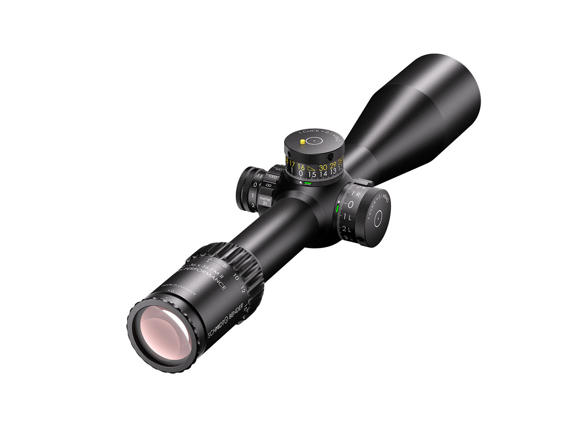 4060537069723 The 6‑36×56 PM II High Performance from Schmidt and Bender is a benchmark optic engineered for serious medium‑ to extreme‑long‑range shooting. With its expansive 6–36× magnification range and a generous 56 mm objective lens, it delivers exceptional clarity, reach and flexibility for demanding applications. Crafted on a robust 34 mm main tube, the scope is compact in length (approx. 390 mm) and relatively light for its class (around 940 g), yet built with the ruggedness and precision befitting the PM II series. The first‑focal‑plane (FFP) reticle ensures accurate hold‑overs, ranging and subtensions at every magnification level. With a transmission rating of well over 90 %, the optical system offers bright, high‑resolution imagery critical for target recognition at extended distances. Its field of view spans about 7.3–1.3 m @100 m, and the exit pupil ranges from approximately 8.3–1.6 mm, providing both wide situational awareness at lower magnification and finely‑detailed views at higher zoom levels. The eye relief is approximately 90 mm, ensuring comfortable viewing across shooting positions. The turret system features ultra‑fine 0.1 mrad click values, and the internal adjustment ranges exceed 40 mrad, giving the shooter a massive envelope for elevation and windage correction. The scope’s innovative “LPI” (Illuminated‑Parallax‑Integrated) system enhances usability, including left‑hand shooter compatibility and more mounting flexibility. Key Specifications: Magnification: 6–36× Objective Lens Diameter: 56 mm Main Tube Diameter: 34 mm Field of View: approx. 7.3–1.3 m @100 m Exit Pupil: approx. 8.3–1.6 mm Eye Relief: approx. 90 mm Transmission: >90% Click Value: ~0.1 mrad Length: approx. 390 mm Weight: approx. 940 g Designed and manufactured in Germany with highest precision, the 6‑36×56 PM II High Performance is ideal for professionals, competition marksmen or hunters seeking top‑tier optical clarity, mechanical integrity and flexibility across distances that demand elite performance.