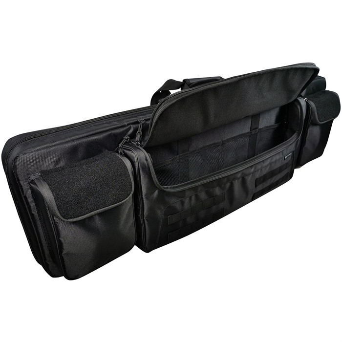 1680D TACTICAL RIFLE CASE Whether you're logging time in at the range or going on an outdoor adventure, it's time to gear up with the EVOLUTION TACTICAL line. The 36" OR 42” TACTICAL RIFLE CASE is loaded with premium padding, functionality and superb durability. Made of durable 1680D fabric, not only does this tactical rifle case look fantastic but is truly heavy duty and will last for years. You'll love the functionality and features loaded into this premium rifle case. Equipped with heavy gauge foam padding, this TACTICAL RIFLE CASE offers maximum impact resistance to protect your firearm from damage. This premium tactical rifle case is designed with hook and loop tie down straps to secure your firearm. It also has a large hook and loop front panel for plenty of patches. This case is designed with great features which include a zippered pocket on front, paracord zipper pulls, MOLLE webbing on front, and an adjustable, removable shoulder strap. With premium functionality and features, this will be your "go to" tactical gun case to transport and carry your firearm for your range days or outdoor adventures. FEATURES: Made of durable 1680D fabric Padded foam material for firearm protection Hook and loop tie down straps to secure your firearm; Large hook and loop front panel for plenty of patches Zippered pocket on front, paracord zipper pulls; MOLLE webbing on front Adjustable, removable shoulder strap SPECIFICATIONS: Dimensions: 36” x 12.5” x 2” inches (Exterior Pouch: 18.5” W 12” H 3” D) Dimensions: 42" x 12.5" x 6" inches (Exterior Pouch: 18.5” W 12” H 3” D)