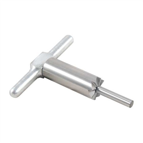 Dieser gehärtete Stahl, 90° Facing Cutter sorgt dafür, dass die Mündung nach dem Kürzen perfekt quadratisch ist; oder verwende ihn, um Dellen und Schäden zu reparieren. Er wird mit einem Griff und einem Pilot geliefert, alles in einer Polypropylen-Box. Der austauschbare Pilot hält den Cutter richtig ausgerichtet. Kaufe zusätzliche Piloten, um einen Cutter für viele verschiedene Kaliber zu verwenden. Piloten für andere Kaliber sind separat erhältlich.