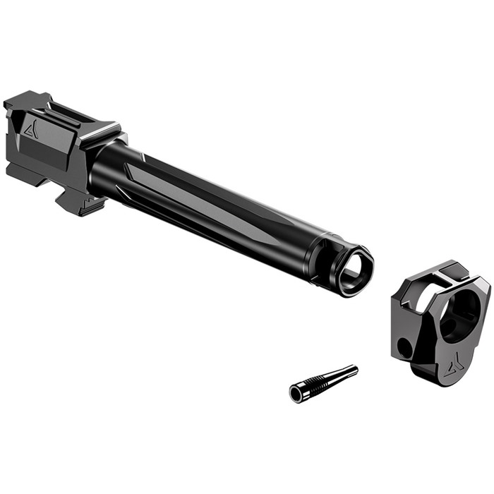 RADIAN WEAPONS AFTERBURNER + RAMJET FOR GLOCK 17 GEN 3® The Radian® AFTERBURNER™ + RAMJET™ combo provide unprecedented recoil reduction and match grade accuracy in a concealed carry package. The threadless barrel design allows for effortless install/removal for cleaning, while LEGAL FOR SALE IN ALL 50 STATES*. The AFTERBURNER™ compensator is machined from stainless steel and the RAMJET™ barrel from hardened 416R SS; both are enhanced with a Radianite™ coating. This combination achieves low friction, high hardness, and high corrosion resistance, making overall durability and erosion from muzzle blast a non-issue. Angled front faces on the AFTERBURNER aid in holstering. The INTRA-LOK® mounting system uses the taper lock principle; a tapered locking screw interfaces with an angled V-groove on the underside of the barrel. This perfectly times the compensator as it locks down onto the upper barrel profile on the muzzle end of the barrel. INTRA-LOK® allows the user to simply slide the compensator over the barrel, insert and tighten the locking screw, making for a simple and repeatable installation process. This system allows the user to easily remove the barrel from the slide for cleaning. DISCLAIMER: “GLOCK” is a federally registered trademark of GLOCK, Inc. and is one of many trademarks owned by GLOCK, Inc. or GLOCK Ges.m.b.H. Neither Brownells nor this site are affiliated in any manner with, or otherwise endorsed by, GLOCK, Inc. or GLOCK Ges.m.b.H. The use of “GLOCK” on this page is merely to advertise the sale of GLOCK pistols, parts, or components. For genuine GLOCK, Inc. and GLOCK Ges.m.b.H. products and parts visit www.glock.com.