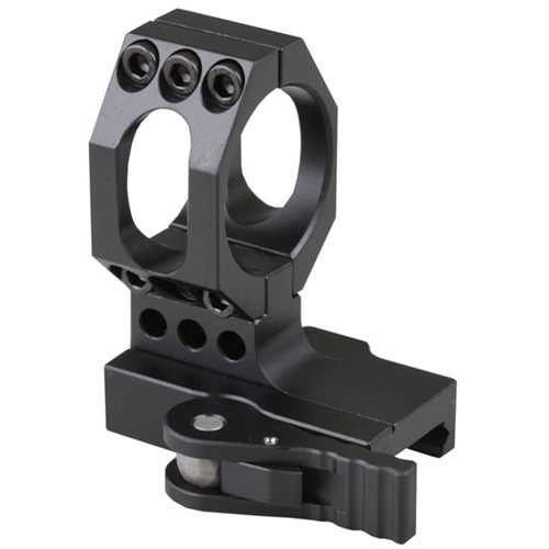 Der Hebel kann so konfiguriert werden, dass er entweder nach vorne oder nach hinten verriegelt, je nach Vorliebe des Bedieners. Die grosse Verriegelungsleiste an der Seite der Montage greift die maximale Fläche der Schiene, während der Kreuzbolzen und zwei integrierte Verriegelungszapfen eine rocksolide Verbindung der Schienenöffnungen gewährleisten, um Bewegung unter Rückstoss zu verhindern. Fünf schwere Stahl-Sechskantschrauben (drei oben, zwei unten) klemmen die vertikal geteilten Ringhälften zusammen. Aussparungen in den Seiten des Rings und in der Basis reduzieren das Gewicht, ohne die Festigkeit zu beeinträchtigen.