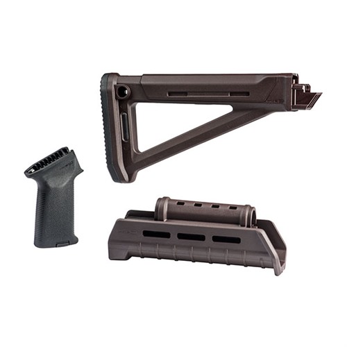 Update your Kalashnikov with these Magpul kits that feature the AK-47/74 MOE stock and handguard along with the Magpul MOE AK grip. Providing Magpul construction and ingenuity to the venerable AK platform, the Magpul MOE AK Stock is an optimized fixed stock for most stamped-receiver rifles. Featuring the unique wedge block fitment of the Zhukov-S Stock, the MOE AK Stock provides internal storage, optimized QD sling swivel placement, a shock absorbing rubber butt-pad for positive placement, and user-selectable snap on Cheek Risers. (Sold Separately) The Magpul MOE AK Hand Guard is a replacement for standard AK pattern rifles WITHOUT a front sling loop on the hand guard retainer. Featuring an extended gripping portion, integrated heat shield, M-LOK mounting capability, and replacement gas tube cover, the MOE AK Hand Guard is an upgrade to any AK pattern rifle. A drop-in upgrade for AK-pattern pistol grips, the MOE AK Grip is compatible with reinforced and un-reinforced receivers. It is designed to improve ergonomics, with an aggressive texture for positive weapon control and one-piece reinforced polymer construction. It is compatible with Magpul Grip Cores for storage customization. *Please note that the Plum kit includes a black version of the MOE AK grip.