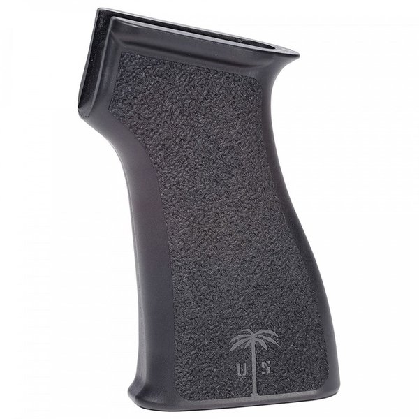 Addressing a common concern among AK owners that the standard grip is too small, the US PALM AK Grip delivers more control through an ergonomic, ultimately more comfortable design. This full-size Westernized rifle grip features a palm swell shaped to drive the user's hand up, and into, the receiver/grip junction. Aggressive stippling ensures a positive grip. Virtually indestructible Ambidextrous Fits AK47, AK74, AKM, PKM, Yugoslavian/Serbian M64 / M70 / M72 / M21, Iraqi Tabuk, and RPK's of virtually any vintage or manufacturer Stock screw and lock washer included Section 922R Compliance Part Made in U.S.A.
