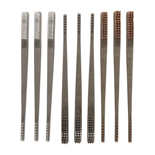 • Variety Bulk Pack All Purpose Brushes enthält: 3 weisse Nylonbürsten, 3 Bronze- und 3 Edelstahl A/P Receiver Brushes.