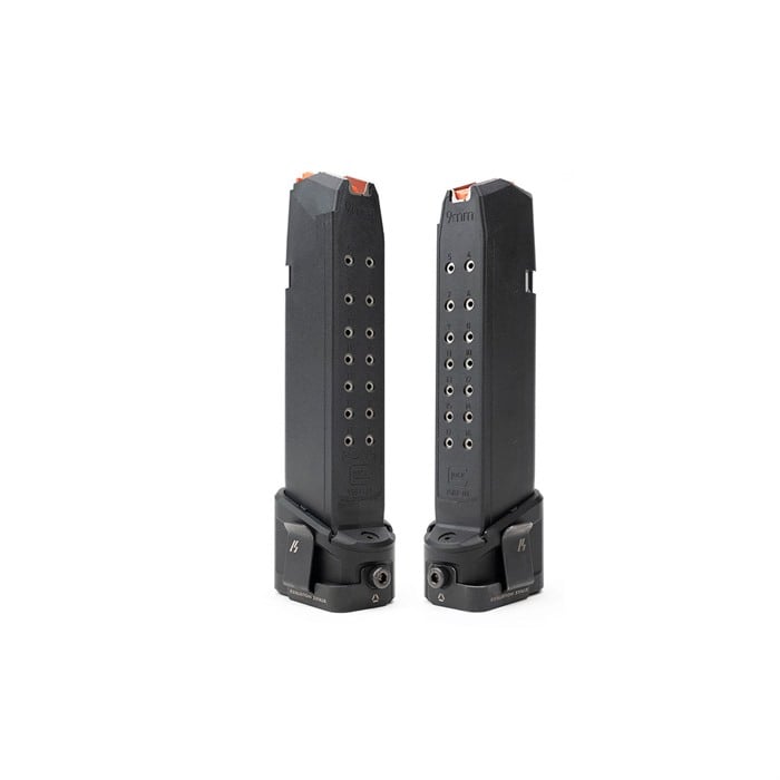 Die Strike Industries Aluminium Extended Magazine Plate für GLOCK™ G17 (9mm) bietet plus 5 Schuss, eine niedrige Reibung und sicheres Laden für dein Magazin.