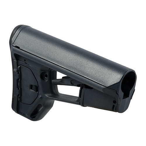 The Adaptable Carbine Stock-Light (ACS-L) is a slimmed-down, lightweight, version of Magpul’s popular ACS stock. The ACS-L provides extra maneuverability by eliminating the ACS’s side storage compartments, while retaining the wide, sloping top for a secure, comfortable cheekweld. Also retained is the storage compartment in the tail of the stock, and the friction locking system that prevents unwanted wobble after extending the stock. Includes a reversible socket for QD pushbutton sling swivels and a 1" sling loop molded in the toe of the stock. The .3" thick rubber recoil pad can be replaced by Magpul Tactical Recoil Pads (sold separately). Models available to fit Mil-Spec (1.14" O.D.) carbine buffer tubes. Buffer tube, carbine buffer, receiver extension nut, and carbine-length action spring not included.