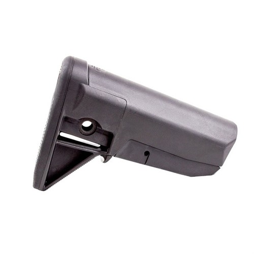 Weighing in just over 7 ounces, the BCMGUNFIGHTER™ Stock is one of the toughest and lightest polymer stocks for Mil-Spec receivers being made today. The Stock is designed slick, to prevent potential tangling with the end-user's sling, pouches, webbing or other gear and is designed with only five parts and one screw. Finally, each Stock is capped with an integrated, color matched rubber butt pad for secure placement in the shoulder pocket as well as increased overall durability. Featuring a new patent pending latch, the BCMGUNFIGHTER Stock reinvents the stock interface with a Mil-Spec buffer tube delivering both a precise engagement and a stock specifically engineered to dissipate impact stress through the assembly. The precision fit latch, made from heat-treated ordnance grade steel, is flat on all sides to ensure the Stock interface with the receiver extension cannot be obstructed by dirt or debris. Its unique geometry also provides increased torsional strength and eliminates the stress-riser found on conventional rounded pins. The Stock comes with both ambidextrous QD swivel sockets as well as a conventional sling attachment slot.