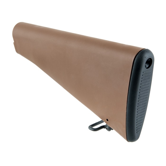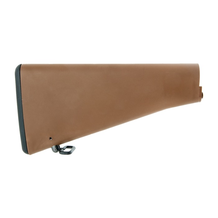 Recreate an American Classic with the Brownells M16A1 Buttstock Assembly, built to accurately replicate the original Stock issued to thousands of American servicemen & women. This Buttstock Assembly is modeled directly off of original stocks, which are becoming increasingly difficult to find, or in decent condition. Combine the M16A1 Buttstock Assembly with the matching Handguard Set & Pistol Grip from Brownells, and you have a new condition furniture set for your AR-15, M16, M16A1 or other early model rifle. The new production buttstock is in the same styling as a "Type D" stock, with a rear sling swivel and no trap door compartment. This model fits the widest variety of early M16 & AR-15 models. Includes A1 length buttstock screw and instructions. Assembly does not include buffer tube or other hardware. Available in several different colors including: Black - Proper for Model 602, XM16E1, M16A1 & later generation rifles introduced after 1963 Green - Proper for early Model 601 rifles, the first AR-15 adopted by the US Air Force in 1959 Brown - Similar to the earliest AR-15 Prototype rifle furniture used in the late 1950s Retro furniture from Brownells is not an exact copy of original components or their construction. Some areas have been changed due to manufacturing methods or to avoid counterfeit concerns.