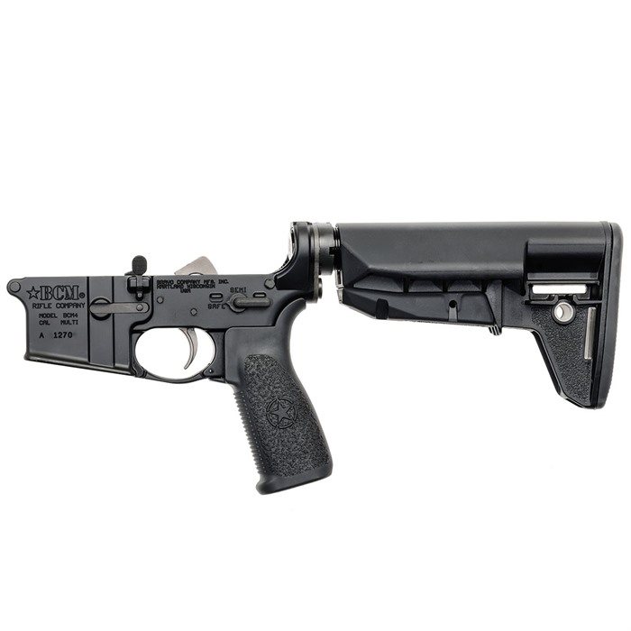 SPECIFICATIONS: Caliber: MULTI Model: BCM4 Stock: BCM Mod 2 SOPMOD Fire Control: PNT Semi Auto Rear Sling Mounts: QTY 3 Receiver Extension: Mk2 Receiver Extension (approximately 3/4” longer than carbine), 7076T6, 8 position, Mil-Spec diameter Buffer Type: MK2 Mod 1 - T0 Buffer (weight = approximately 3.8oz) Pistol Grip: BCM Mod 4 Trigger Guard: BCM Enhanced BCM Included Upgrades: BCM PNT™ Trigger (Polished Nickel Teflon) BCM QD Sling Mount End Plate BCM Pistol Grip Mod 4 BCM Stock Mod 2 SOPMOD BCM Enhanced Trigger Guard BCM MK2 RMS (Recoil Mitigation System) BCM Lower Receiver Groups Also Feature: Receivers Machined from Aluminum Forgings 7075-T6 Receivers Hardcoat Anodized per MIL-A-8625F, Type III, Class 2 Staked M4 Lock Nut MK2 Mod 1 - T0 Buffer Mil-Spec M16A4 rifle action spring Low Shelf for RDIAS installation Low Shelf for Accuwedge use Fire Controls marked SAFE and SEMI BCM QD Sling Mount End Plate As with all BCM rifle products and accessories, 100% Made in the USA.