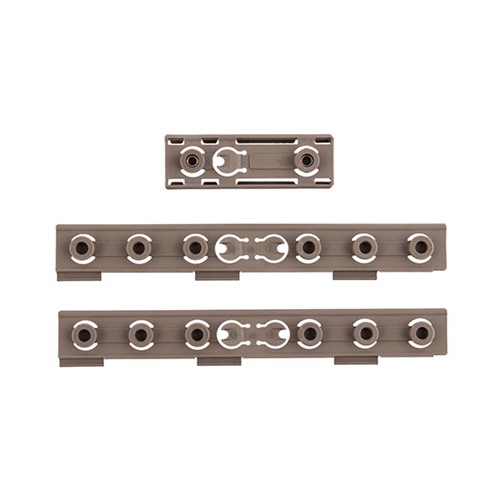 Das KAC Keymod Wire Management Kit beinhaltet ein Set aus zwei 5,5" langen Polymer-Rail-Panels zur Kabelverwaltung und einer Schaltertasche. Die strukturierten Panels sind identisch mit den Standard-Keymod-Panels von Knight, verfügen jedoch über zusätzliche Haken an den Seiten, sodass Licht- und/oder Laserdrähte sicher verstaut werden können.