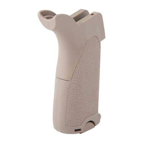 Reduced angle, ergonomically enhanced grips are designed to improve rifle control for shooters preferring the modern, “squared off” stance. Constructed of durable, impact-resistant polymer, they feature a texturized surface for a sure-hold and a water-resistant, hinged door that opens to reveal a small compartment capable of storing batteries or other small items. Two included modular triggerguard inserts (smooth and extended) may be used to close the gap between the triggerguard and grip depending on your preference; inserts also work well on rifles with larger triggerguards. MOD-2 has the same wider profile as the MOD-3 but also gives the user the additional option of customizing the grip with three interchangeable backstraps for various hand sizes, weapons, and grip positions. It also includes two interchangeable inserts for either a smooth front strap or a “duckbill” to cover the trigger guard gap.