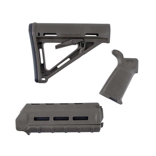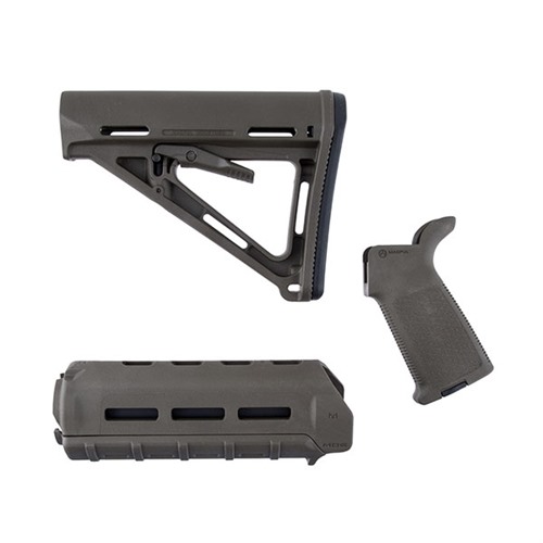 These furniture sets allow you to easily upgrade your rifle with the popular Magpul MOE line. Included are the MOE Mil-Spec stock, MOE carbine forend, and MOE grip. Furniture sets are available in black, Flat Dark Earth, olive drab green, and gray.