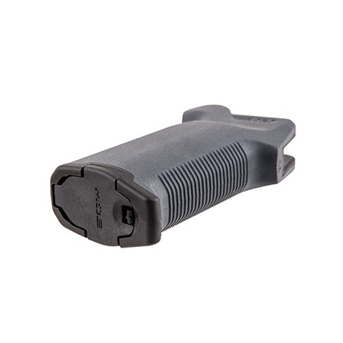 Tons of grips & different manufacturers out there to choose from. Magpul has a good name and this came in the color I wanted. It's an angled grip with a soft feel (not a hard poly plastic..) Small storage in the grip works well for AR specific tools & batteries. Great item that I believe is rugged and will last.
