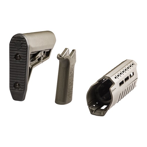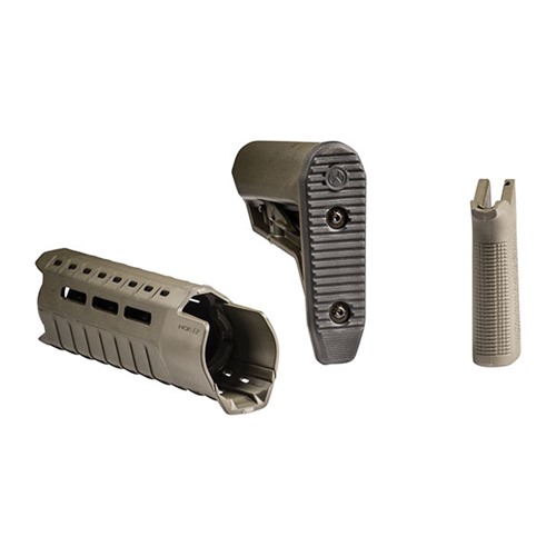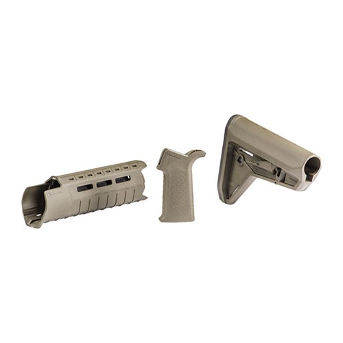 Upgrade your AR-15 rifle with this MOE-SL furniture set by Magpul. The MOE SL Stock – Mil-Spec Model is a drop-in replacement buttstock for AR-15/M4 carbines using mil-spec or commercial sized receiver extension tubes. Designed for the modern battlefield, the sleek profile, dual-side release latches, rolled toe, and angled rubber butt-pad is optimized for use with body armor or modular gear and provides for efficient shoulder transitions. The MOE SL Hand Guard for AR-15/M4 firearms with carbine-length gas system and A2 front sight provides modular flexibility with M-LOK accessory slots in a lightweight, sleek, cost effective design. Similar to the MOE-K2, the MOE SL Grip (Magpul Original Equipment Slim Line) is a drop-in upgrade for AR-15/M4 pistol grips with a more vertical grip angle optimized for short LOP weapons that bring the primary hand in closer to the shooter’s body. With an aggressive new texture for positive weapon control along with excellent ergonomics, the SL Grip provides a slightly smaller size and slimline feel. All mounting hardware included. Must be used with the triangular A2 front sight assembly; other gas blocks are not compatible.