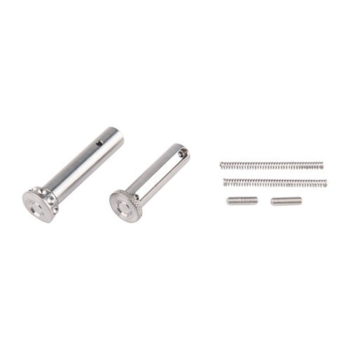 I pin in acciaio temprato si adattano ai lower standard AR-15, rendendo il smontaggio del fucile facile e veloce. Questi pin sono più lunghi di .030" rispetto agli standard, offrendo una presa migliore quando vengono spinti dal lato sinistro del ricevitore.
