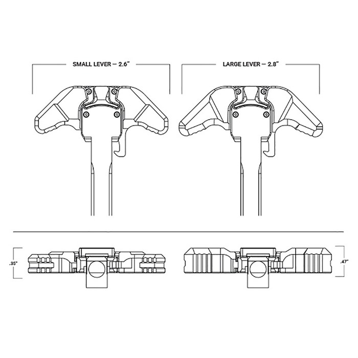 A large-frame AR .308 rifle needs a larger charging handle than those small, flimsy mil-spec designs. This Aero Precision Breach Ambidextrous Charging Handle is sized right for your big-bore AR, and it's built right so that you can count on it in harsh environments and brutal scenarios. Each Aero Precision Breach Charging Handle can be had in two different sizes, so you can choose the one that best meets your needs. The smaller of the two levers provides a sleek design that blends in with the overall lines of your rifle without creating any snag points, but it still provides a comfortable, ergonomic surface for easy racking. The larger of the two levers gives you more surface area for instant, easy activation of the lever, whether through rapid one-handed racking or other motions. The Aero Precision Breach Charging Handle is machined from 7075 aluminum and is treated with a hardcoat-anodized finish. Like all of Aero's products, this handle is made right here in the USA.