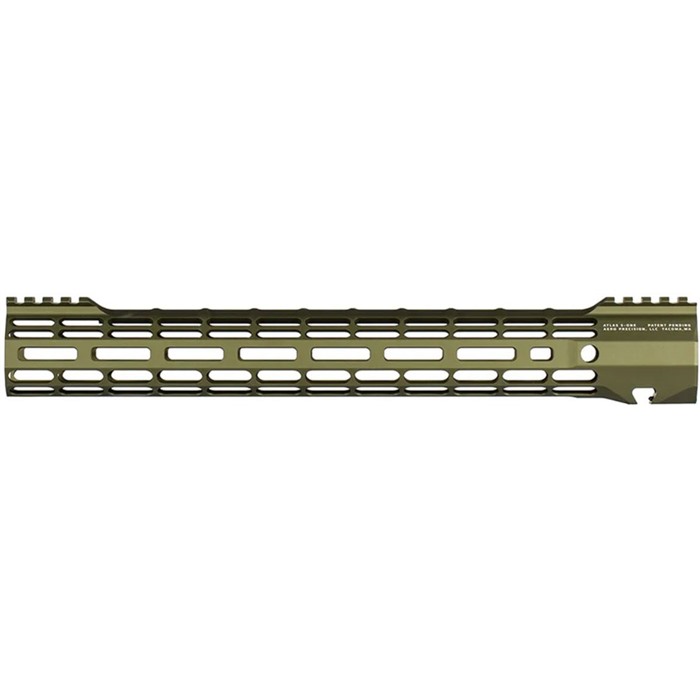 The ATLAS R-ONE is the newest addition to the Aero Precision Handguard lineup. Machined from 6061-T6 Aluminum, the R-ONE line of handguards are designed with size and weight in mind, providing the perfect handguard for your lightweight build. Our proprietary ATLAS attachment system is a durable and dependable mounting platform, maintaining a slim profile while still providing the strength and stability customers have grown to love from Aero Precision handguards. ATLAS The new Aero Taper Lock Attachment System (ATLAS) is both functional and aesthetically pleasing. It features 2 mirrored tapered locking nuts that provide evenly distributed clamping pressure across a custom engineered barrel nut with use of a turnbuckle screw. A ratcheting detent further secures the design while providing positive registration during installation. By design, the even pressure of the ATLAS system avoids distortion of the handguard often seen with current applications during installation. All hardware mounting parts are included with the purchase of an ATLAS Handguard. LIGHTWEIGHT BY DESIGN M-LOK Handguard Weights: 12.7” – 8.79 oz / 15" – 10.6 oz Mounting Hardware Weight: 4.72 oz (same across all ATLAS Handguard options) FEATURES: Full top picatinny rail for optional attachments Quick disconnect sling socket at the 3, 6 and 9 o'clock positions Compatible with low profile gas blocks 1.3" Inside diameter 1.5" Outside diameter Compatible with AR308 upper receivers and barrels NOT Compatible with M5E1 Enhanced Upper Receivers ATLAS Handguards are designed to match seamlessly with Aero’s M5E1 Threaded Upper Receivers. However, they may not be compatible with billet upper receivers due to indexing tabs. Save when you buy them as a combo. PLEASE NOTE: These handguards do not come with a wrench. A standard armorers wrench will work with all M5 ATLAS Handguards.