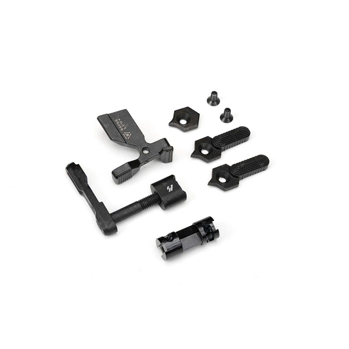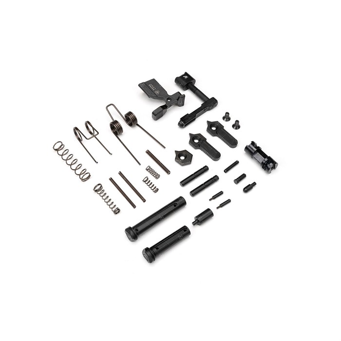 Tu peux réutiliser un groupe de gâchette AR existant ou choisir ta propre gâchette AR, sans te retrouver coincé avec une gâchette Mil-Spec basique qui finira par prendre la poussière dans un tiroir. Cependant, les ressorts de marteau et de gâchette ainsi que les goupilles sont inclus dans le sac.