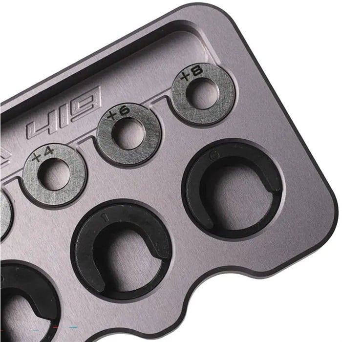 Disponible avec un système de montage spécifique au Zero ou un support de douille traditionnel, cela te permet de régler ton shoulder bump avec un ensemble de 6 inserts en acier inoxydable de précision, par paliers de .002″ à la fois.