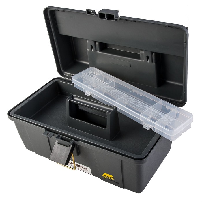 BROWNELLS CLASSIC ALL-PURPOSE TOOL BOX The Brownells Classic All-Purpose Tool Box is a spacious and durable field toolbox designed to accommodate all essential gunsmithing tools. Featuring the Brownells logo, this oil and solvent-proof box ensures that your tools remain organized and protected during transport and use. Description and Features: Crafted from robust ABS polymer, the toolbox offers ample space to hold all kit tools, with additional room for personal favorites. Its oil and solvent-proof construction ensures durability and longevity, making it ideal for field use. The box is adorned with the Brownells logo, adding a touch of authenticity and style. Specifications: Material: ABS Polymer Color: Gray Compatibility: Designed to accommodate a variety of gunsmith essential tools Dimensions: 15”x7.5”x5” Customer Insights: Customers appreciate the roomy interior of the toolbox, noting that it comfortably holds all necessary tools with space to spare for additional items. The oil and solvent-proof feature is particularly valued, as it maintains the box's integrity and appearance even after exposure to common cleaning agents. The inclusion of the Brownells logo is also a favored aesthetic touch among customers. Incorporating the Brownells Classic All-Purpose Tool Box into your gunsmithing gear ensures that your tools are securely stored and protected, whether you're in the workshop or out in the field. Its durable construction and thoughtful design make it an essential accessory for all your go-to gunsmithing tools.