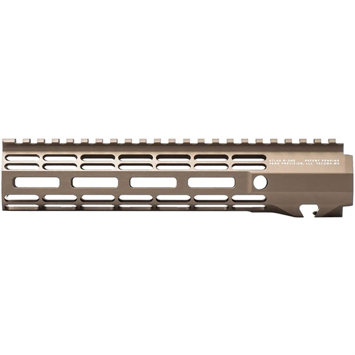 The ATLAS R-ONE is the newest addition to the Aero Precision Handguard lineup. Machined from 6061-T6 Aluminum, the R-ONE line of handguards are designed with size and weight in mind, providing the perfect handguard for your lightweight build. Our proprietary ATLAS attachment system is a durable and dependable mounting platform, maintaining a slim profile while still providing the strength and stability customers have grown to love from Aero Precision handguards. Available in KeyMod and M-LOK® profiles with 12" and 15" options (7" and 9" options coming soon). ATLAS The new Aero Taper Lock Attachment System (ATLAS) is both functional and aesthetically pleasing. It features 2 mirrored tapered locking nuts that provide evenly distributed clamping pressure across a custom engineered barrel nut with use of a turnbuckle screw. A ratcheting detent further secures the design while providing positive registration during installation. By design, the even pressure of the ATLAS system avoids distortion of the handguard often seen with current applications during installation. All hardware mounting parts are included with the purchase of an ATLAS Handguard. Lightweight By Design KeyMod Handguard Weights: 7" - 5.12 oz / 9" - 5.92 oz / 12" - 7.84 oz / 15" - 8.96 oz M-LOK Handguard Weights: 7" - 5.22 oz / 9" - 6.03 oz / 12" - 8 oz / 15" - 9.07 oz Mounting Hardware Weight: 4.72 oz (same across all ATLAS Handguard options) Features: Full top picatinny rail for optional attachments Quick disconnect sling socket at the 3, 6 and 9 o'clock positions Compatible with low profile gas blocks 1.3" Inside diameter 1.5" Outside diameter Compatible with mil-spec AR15 upper receivers and barrels ATLAS Handguards are designed to match seamlessly with our M4E1 Threaded Upper Receivers. Additionally, they are compatible with any Mil-Spec AR-15 upper receivers as well. However, they may not be compatible with billet upper receivers due to indexing tabs. Save when you buy them as a combo.