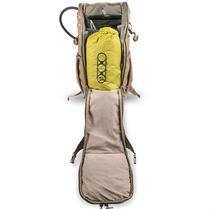 Der Eberlestock H31 Bandit ist kompatibel mit dem 2L oder 3L Source Hydration Bladder. Im oberen Reissverschlussfach findest du einen Schlüsselhaken, ein Netzfach für die Aufbewahrung und ein drittes Fach für Magazine.