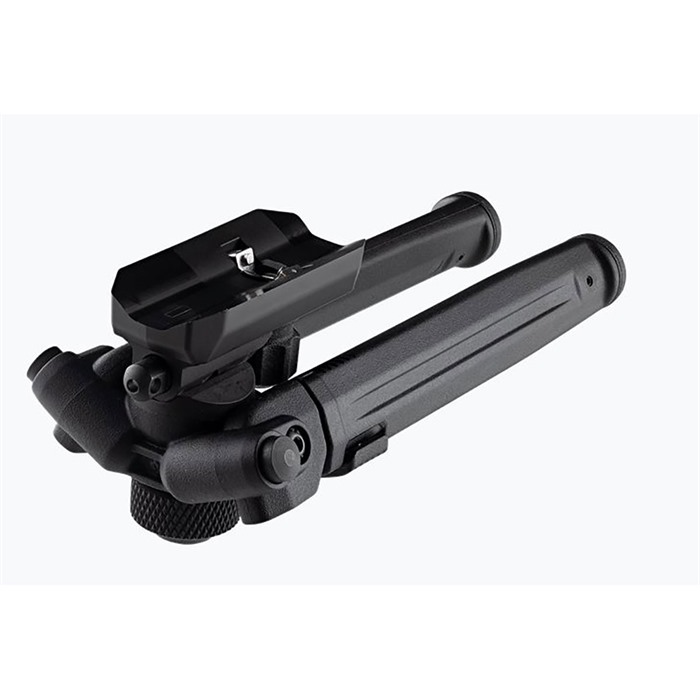 - Die Beinverlängerungen gleiten und verriegeln sicher mit einem Knopfdruck, während der werkzeuglose, geriffelte Bipod-Verriegelungsknopf eine einfache Anpassung zwischen den Schüssen ermöglicht.