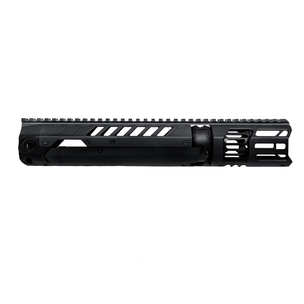 Manufactured specifically for integration with AR-10 rifles, this exclusive BLK LBL bipod is crafted from durable anodized aluminum and stainless steel and features our revolutionary barrel-through design, swiveling ball-and-socket joint and extendable, rear-folding integrated legs.
