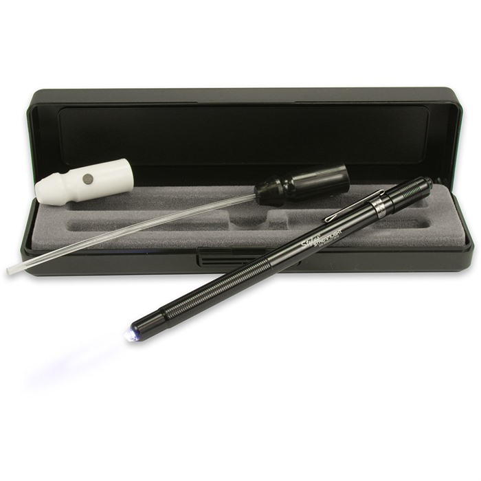 667739710008 Die Streamlight® Stylus 3, LED-Lampe mit einem Delrin®-Diffusor, bietet ein strahlendes, weisses Licht, das deinen Gewehr-, Schrotflinten- oder Handfeuerwaffenlauf wirklich ausleuchtet. Damit kannst du deutlich alle Ablagerungen oder Vertiefungen im Lauf und im Hals sehen. Ein leistungsstarker Magnet im Diffusor hält das Licht in einem Gewehrempfänger, sodass du freihändig sehen kannst. Enthält einen flexiblen, fünf Zoll langen, faseroptischen Adapter, mit dem du tief in Mechanismen und andere schwer zu untersuchende Stellen schauen kannst. Gefräste Aluminiumkonstruktion; zweigängiger Schalter, Dreh- oder Druckknopf.Lieferzeit ca. 8-15 Tage aus dem Lager USA.