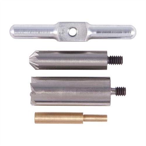 050806022645 Set umfasst: einen 90° Fräser zum Quadratfräsen einer Mündung nach dem Kürzen oder zur Reparatur von Schäden; einen 45° Entgratfräser, um die Kanten der Züge für einen sauberen Geschossausgang zu brechen oder um den Mund eines Revolverzylinders für schnelles Nachladen zu entgraten; plus einen Griff, der zu jedem Fräser passt, und einen Messingbohrpilot. Der austauschbare Pilot hält den Fräser richtig ausgerichtet. Kaufe zusätzliche Piloten, um einen Fräser für viele verschiedene Kaliber zu verwenden. Piloten für andere Kaliber sind separat erhältlich.Nachbestellt, Lieferzeit ca. 4-12 Wochen aus dem Lager USA.