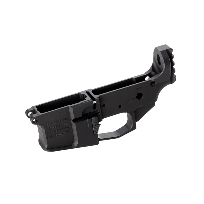 BRN-180M STRIPPED LOWER RECEIVER BLACK AMBIDEXTROUS The Brownells BRN-180M® Lower Receiver is specifically designed to pair up with the BRN-180® Upper Receivers to maximize the full potential of this unique line. The new BRN-180M is now fully ambidextrous and includes ambidextrous bolt release and an ambidextrous magazine release. The ambidextrous magazine lever was designed to work in conjunction with the standard Mil-spec magazine catch for proper function. The new BRN-180M includes the ambidextrous bolt release and magazine release lever hardware. While designed to be fully compatible with Mil-Spec lower receiver parts and triggers the BRN-180M® Lower Receiver does away with the traditional receiver extension threads and in their place has a milled in 1913 Picatinny rail section for mounting of Sig Sauer® MCX style stocks. This Lower Receiver is made from billet 7075 T-6 aluminum with a hard-anodized finish, has integral oversized trigger guard, and the unique features of a threaded bolt catch pin and captive set screw for the takedown pin detent spring, both included. Due to the proprietary design nature of the BRN-180M® Lower Receiver it will not function with standard AR-15 upper receivers. Bolt catch screw, ambi-magazine release lever screw and ambi-bolt catch lever screw are all installed/removed with 1/16" allen. Take down detent capture screw = 0.050" allen. There is a tensioning screw to put pressure on the take down pin upper receiver lug = 1/8" allen FFL Restriction: You must be 18 years of age or older to purchase rifles and shotguns, and 21 or older to purchase handguns, receivers, frames, and suppressors. Minimum age requirements may vary by state. Check your state and local laws before ordering. It is your responsibility to fully understand the laws in your area and to ensure that possession of this item would not violate any applicable state or local laws. This product must be delivered to a Federal Firearms License holder.