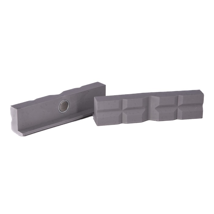 Diese Backen sind speziell für das Halten von sehr empfindlichen Holz- und Kunststoffteilen sowie dünnwandigen Rohren konzipiert. Sie verfügen über eine weiche, synthetische Gummifläche, die zerbrechliche Werkstücke sanft hält, die nur sehr leichten Klemmdruck aushalten können. Das Gummimaterial wird von drei Schichten Canvas unterstützt, die die federnden Eigenschaften des Gummis ausgleichen und genug Steifigkeit bieten, um das Teil sicher zu halten.