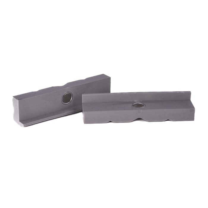 Das dichte faserige Material auf den Flächen dieser Backen hält fein bearbeitete oder polierte Teile sicher. Die Fasern werden die polierte Oberfläche nicht beschädigen. Die dichten Schichten aus Faser sind hitzebeständig und verformen sich nicht, wenn warme Werkstücke geklemmt werden.