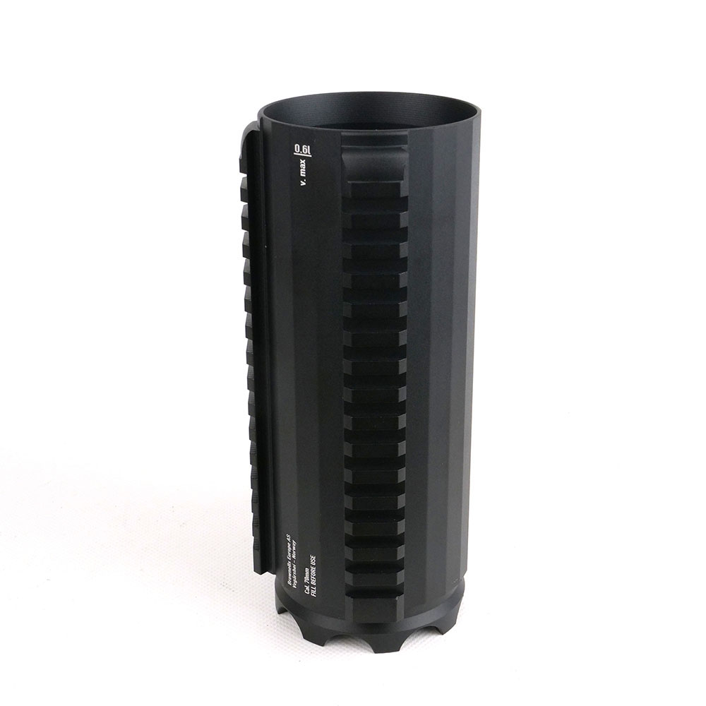Der Griff? Er ist inspiriert vom AR-15 Tragegriff und gibt dir die Kraft, dein Getränk wie nie zuvor zu „halten“. Warnung: Es kann Gefühle der Unbesiegbarkeit hervorrufen und den Drang, jedes Mal „Nachladen!“ zu rufen, wenn du ein weiteres Getränk einschenkst.